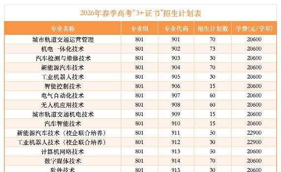 2026年广州华夏职业学院春季高考招生计划表